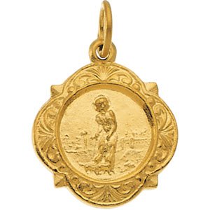 St. Lazarus Medal | 12.14 x 12.09 mm. 14K Yellow Gold.