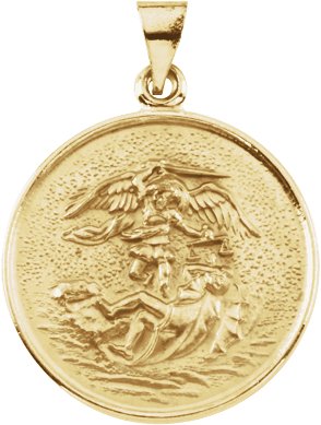 St. Michael Medal | 13 mm. 18K Yellow Gold. Engravable. St. Michael is the patron saint of grocers, mariners, paratroopers, policemen, radiologists, the sick and Germany.