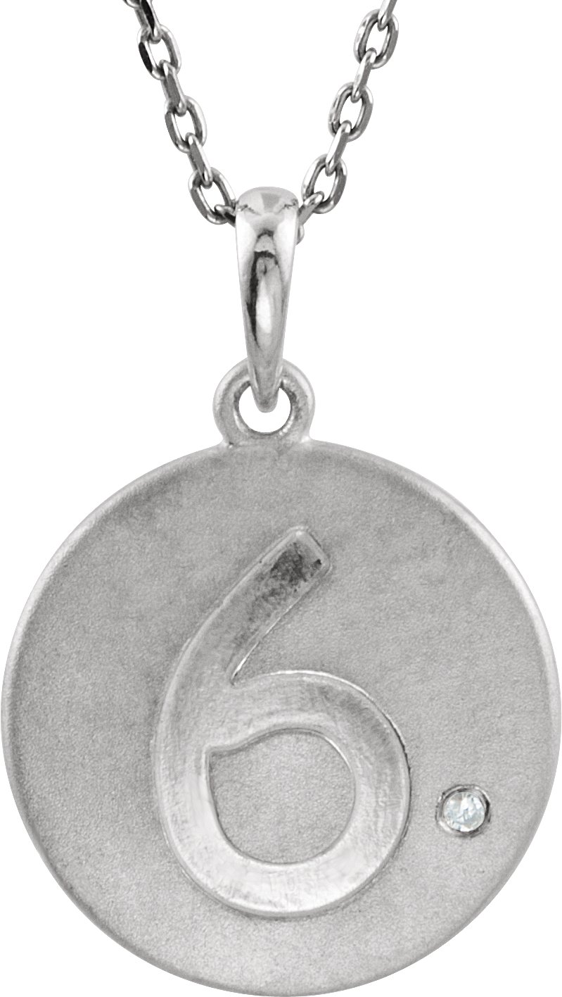 Sterling Silver .005 CT Diamond Numeral 6 Disc 18" Necklace Ref. 4334000