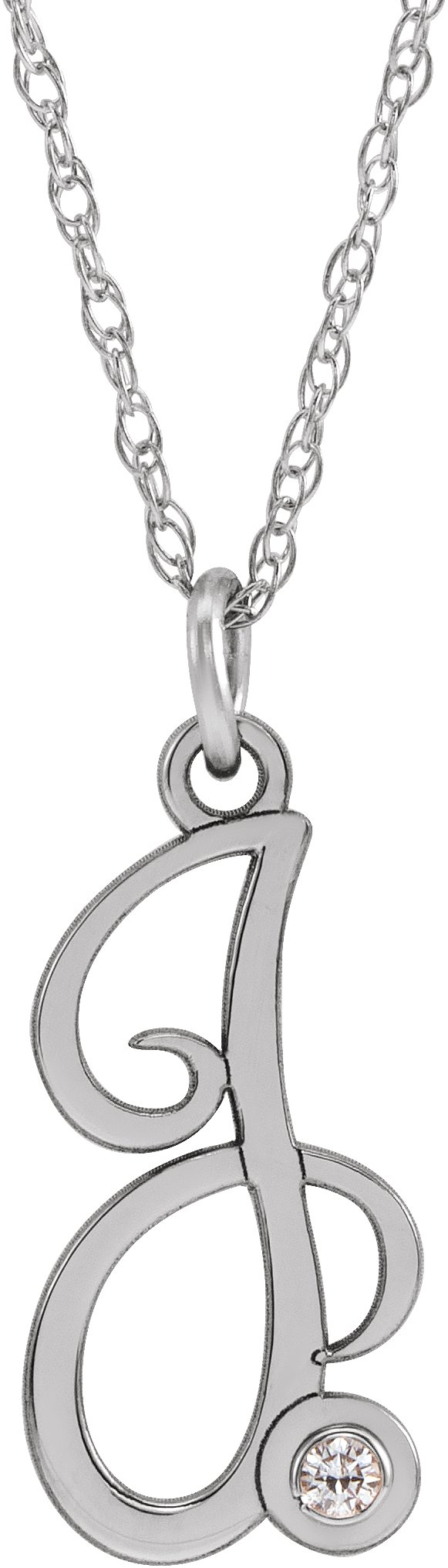 Description: .02 Ct Diamond Accented Script Initial Necklace
