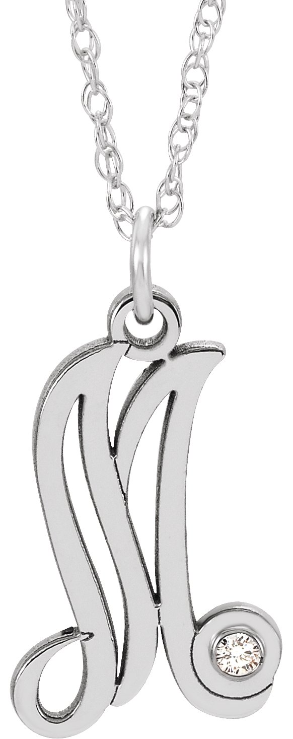 Sterling Silver .02 CT Diamond Script Initial M 16 18" Necklace Ref. 16047604