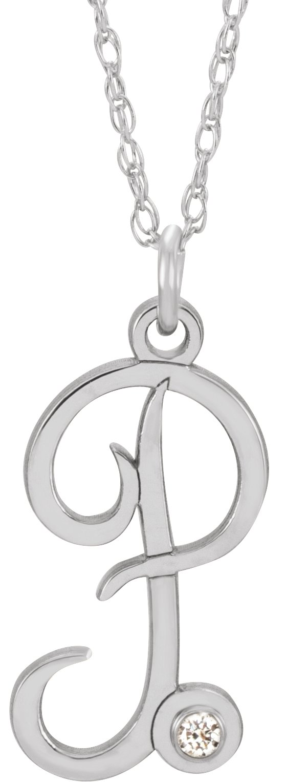 Sterling Silver .02 CT Diamond Script Initial P 16 18" Necklace Ref. 16047607
