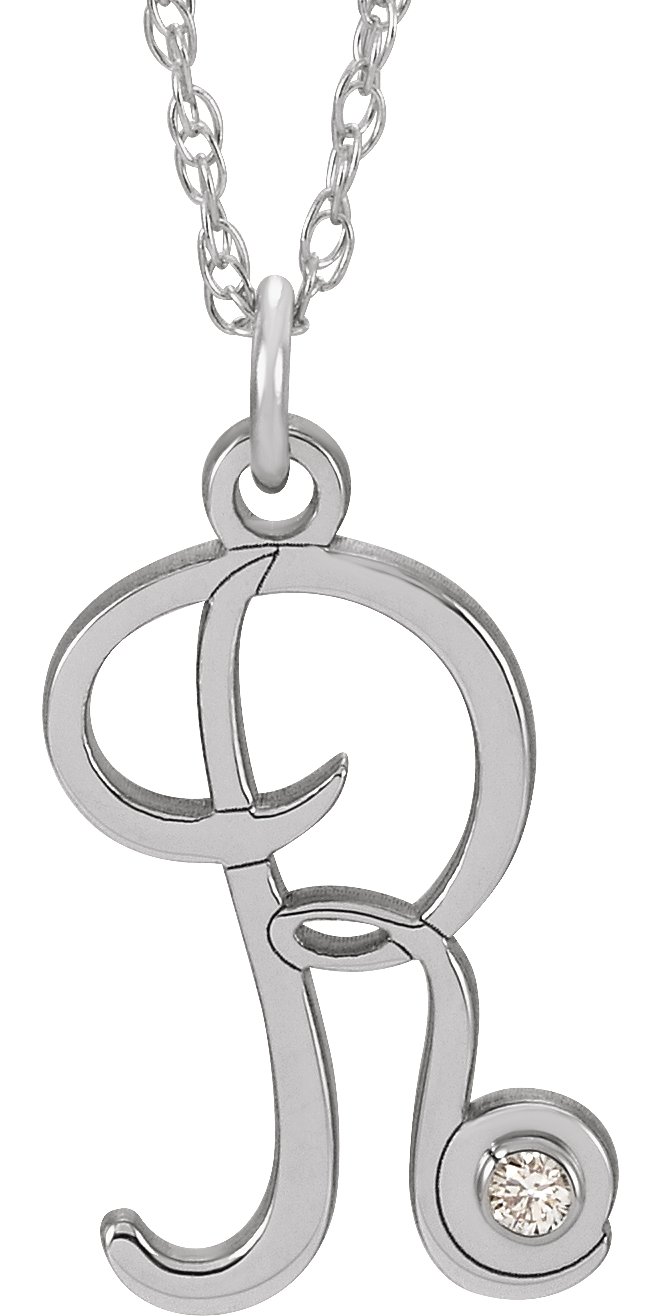 Sterling Silver .02 CT Diamond Script Initial R 16 18" Necklace Ref. 16047609