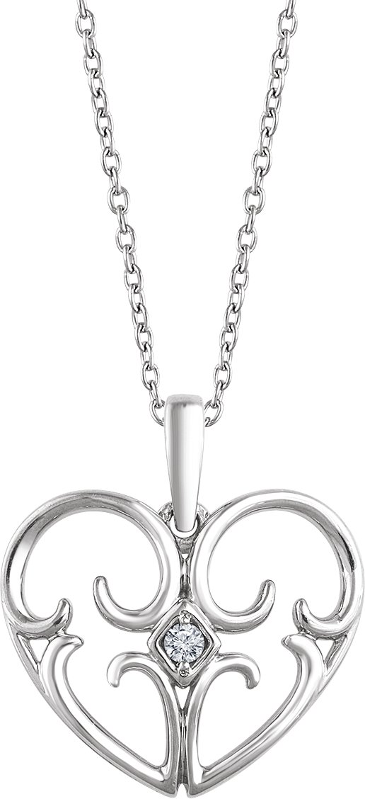 Sterling Silver .03 CT Diamond Heart 18" Necklace Ref. 13379885