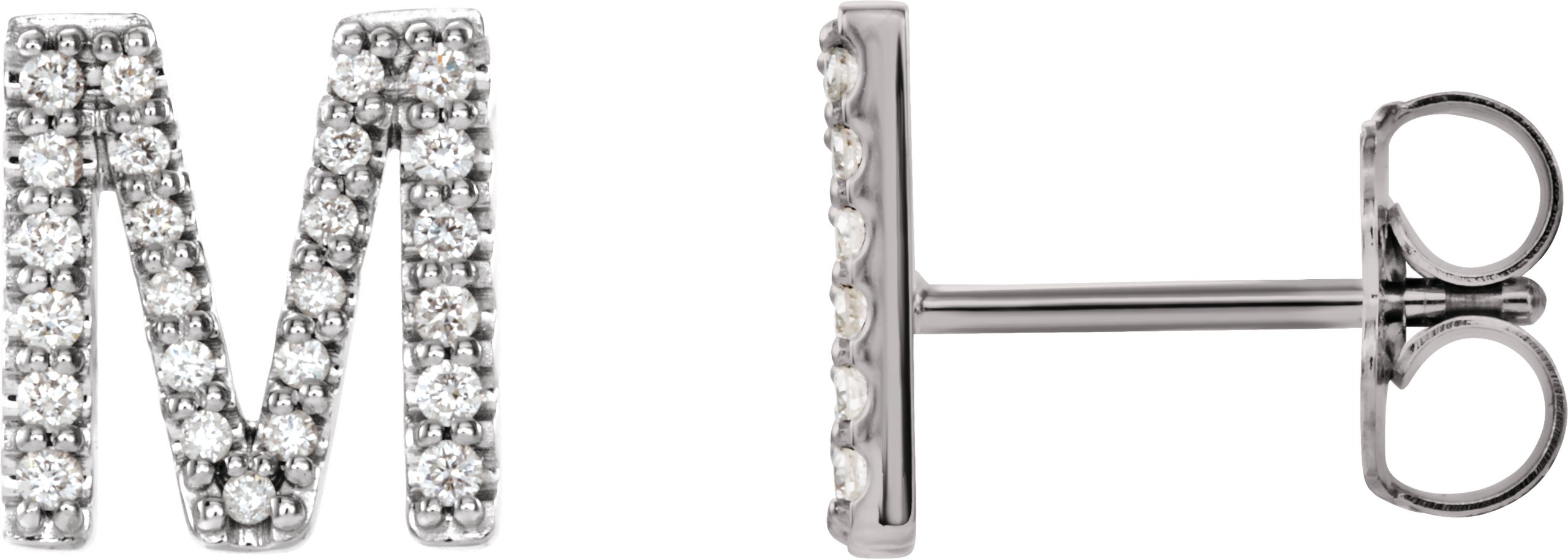 Sterling Silver .08 CTW Diamond Single Initial M Earring