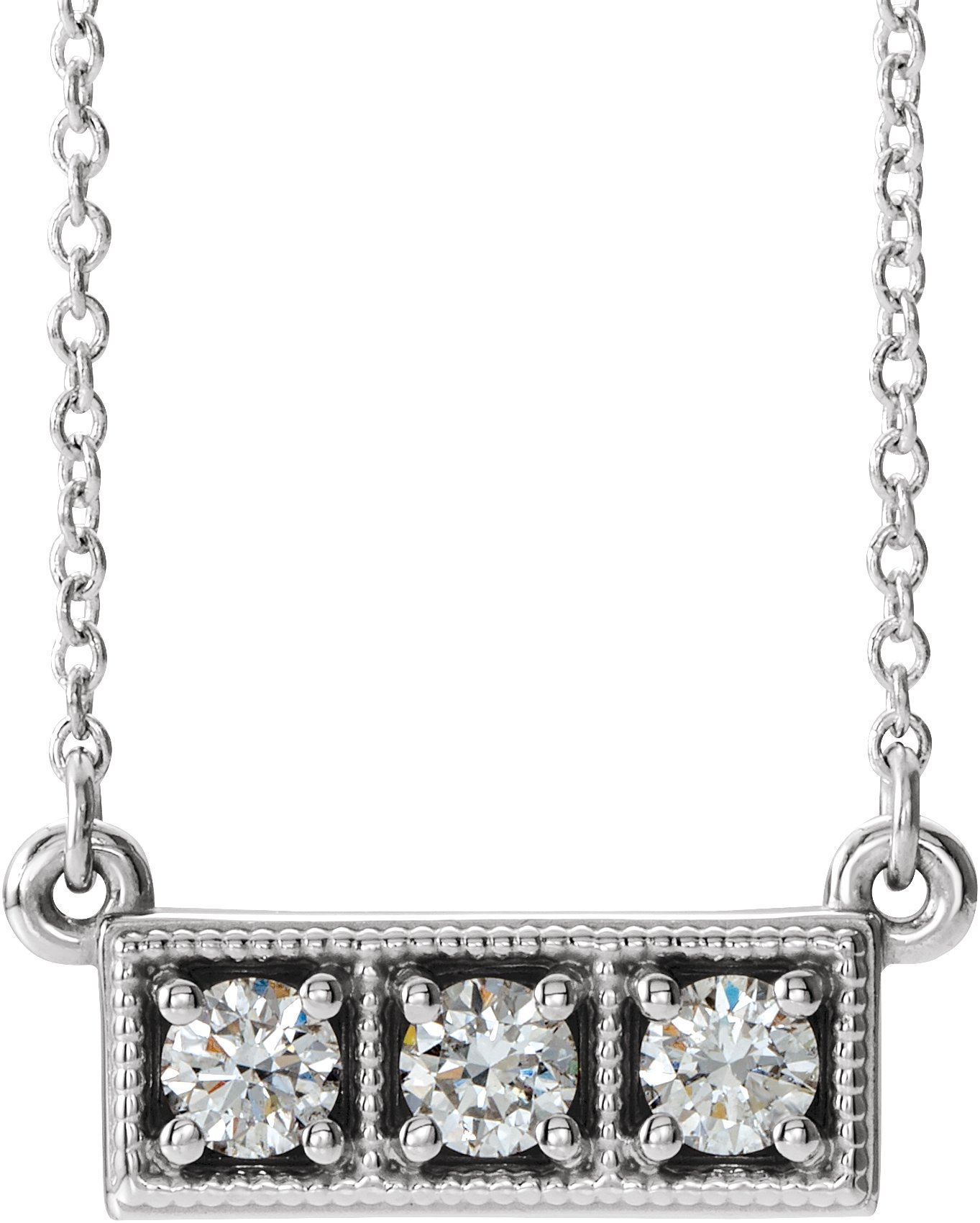 Sterling Silver 1/3 CTW Diamond Three Stone Granulated Bar 16 18" Necklace Ref. 14204224
