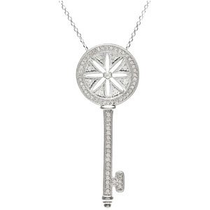 Sterling Silver 3/8 CTW Diamond Key 18" Necklace Ref. 2997246