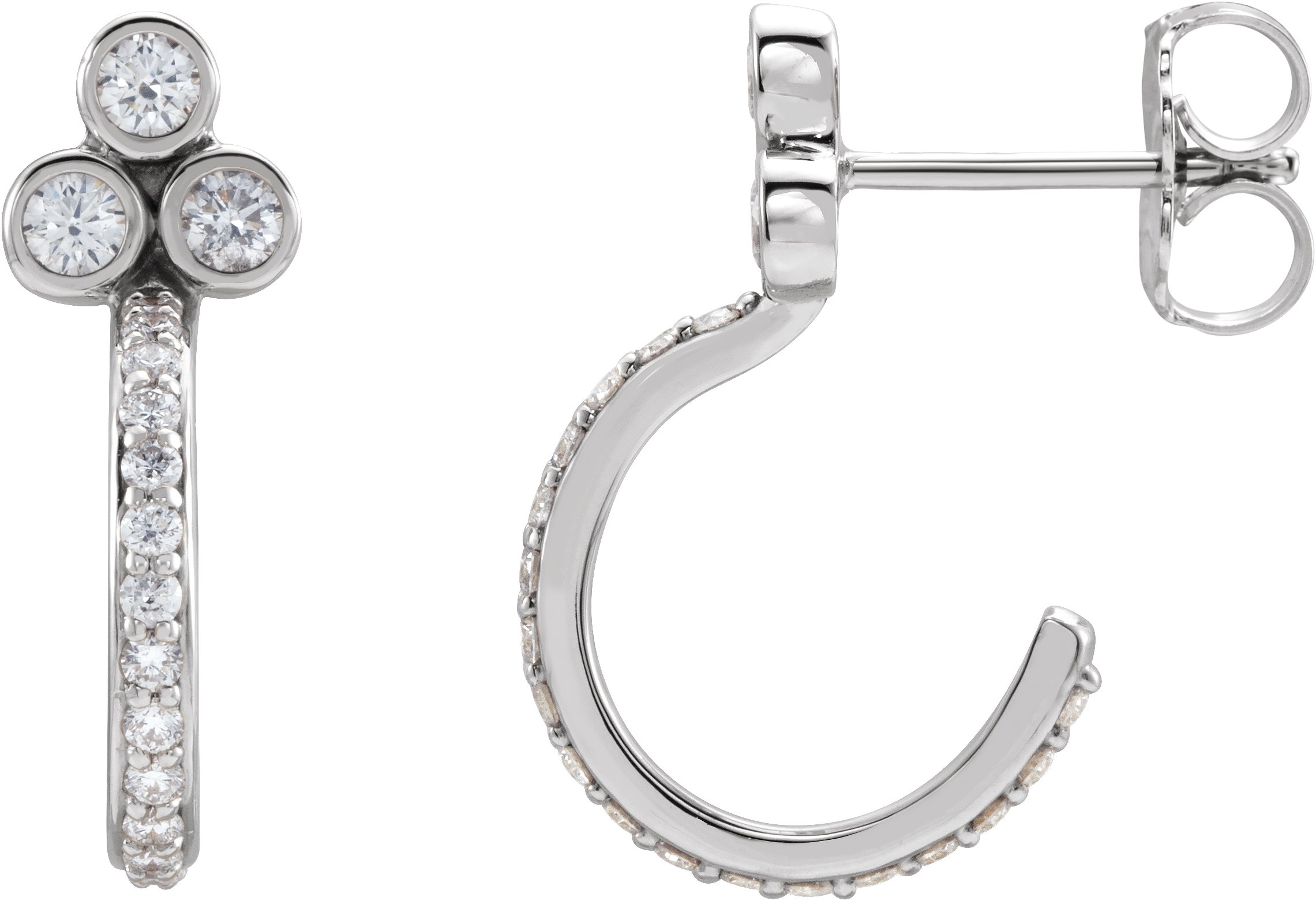 Description: 1/2 Ctw Diamond Cluster J-Hoop Earrings