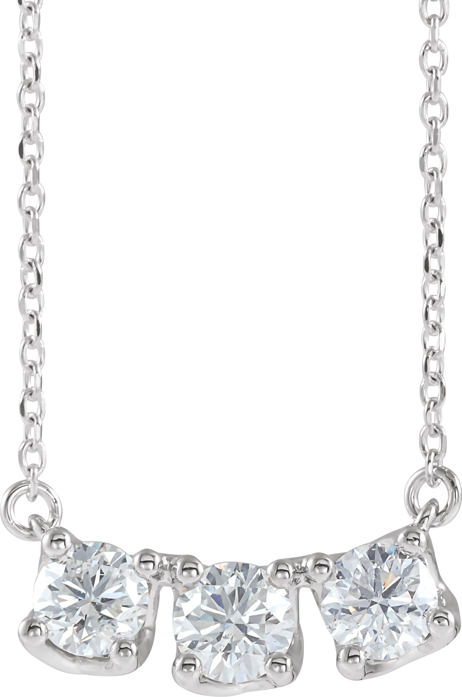 Sterling Silver 1 CTW Diamond Three Stone Curved Bar 16" Necklace Ref. 15022927
