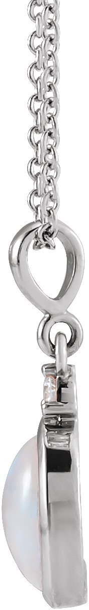 Description: Natural White Opal And .03 Ct Natural Diamond Cabochon Bezel-Set Necklace