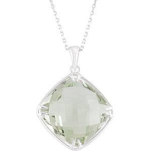 Sterling Silver 16x16 mm Green Quartz 18" Necklace Ref. 3351896