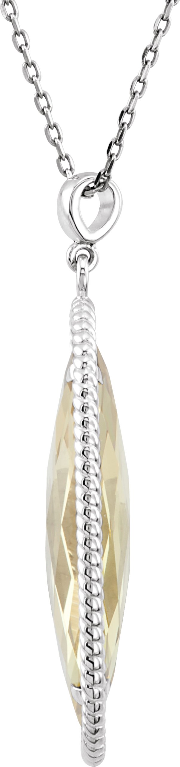 Sterling Silver 25x10 mm Oval Honey Quartz Rope 18" Necklace Ref. 4943057