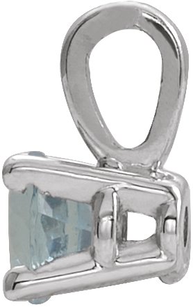 Sterling Silver 3 mm Round Imitation Aquamarine Birthstone Pendant