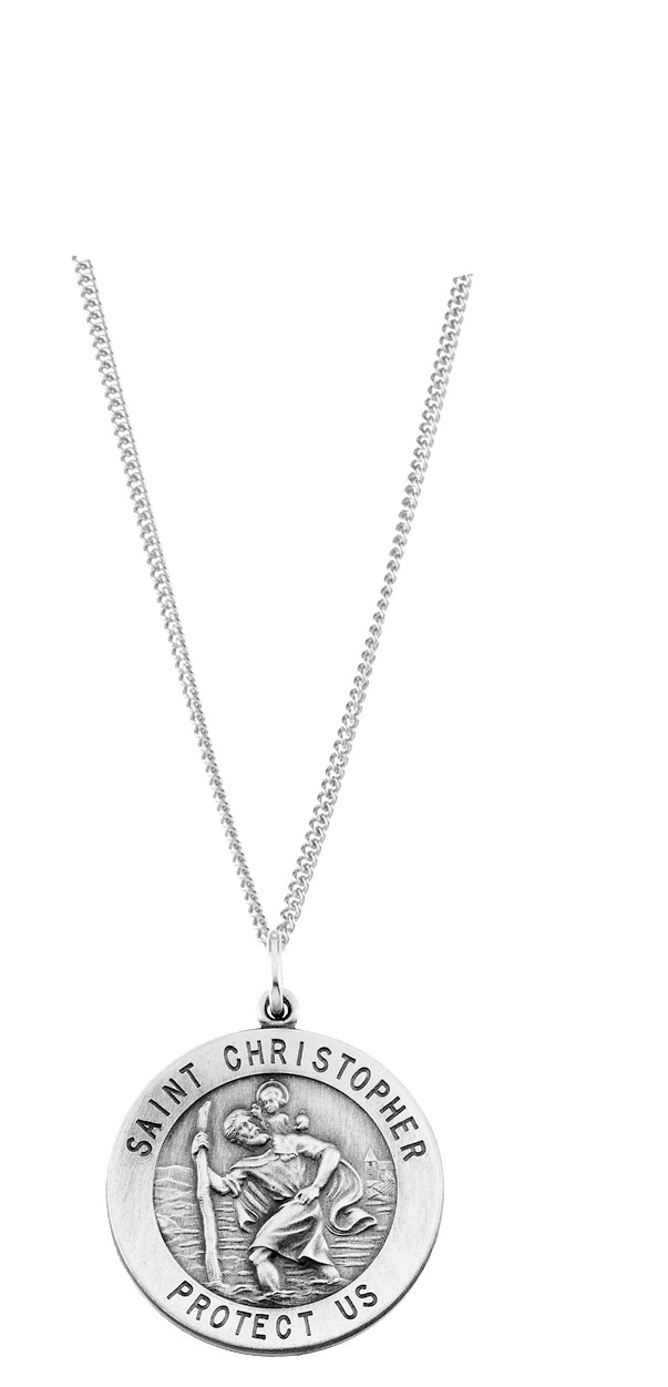 Sterling Silver 33 mm St. Christopher Medal 24” Necklace