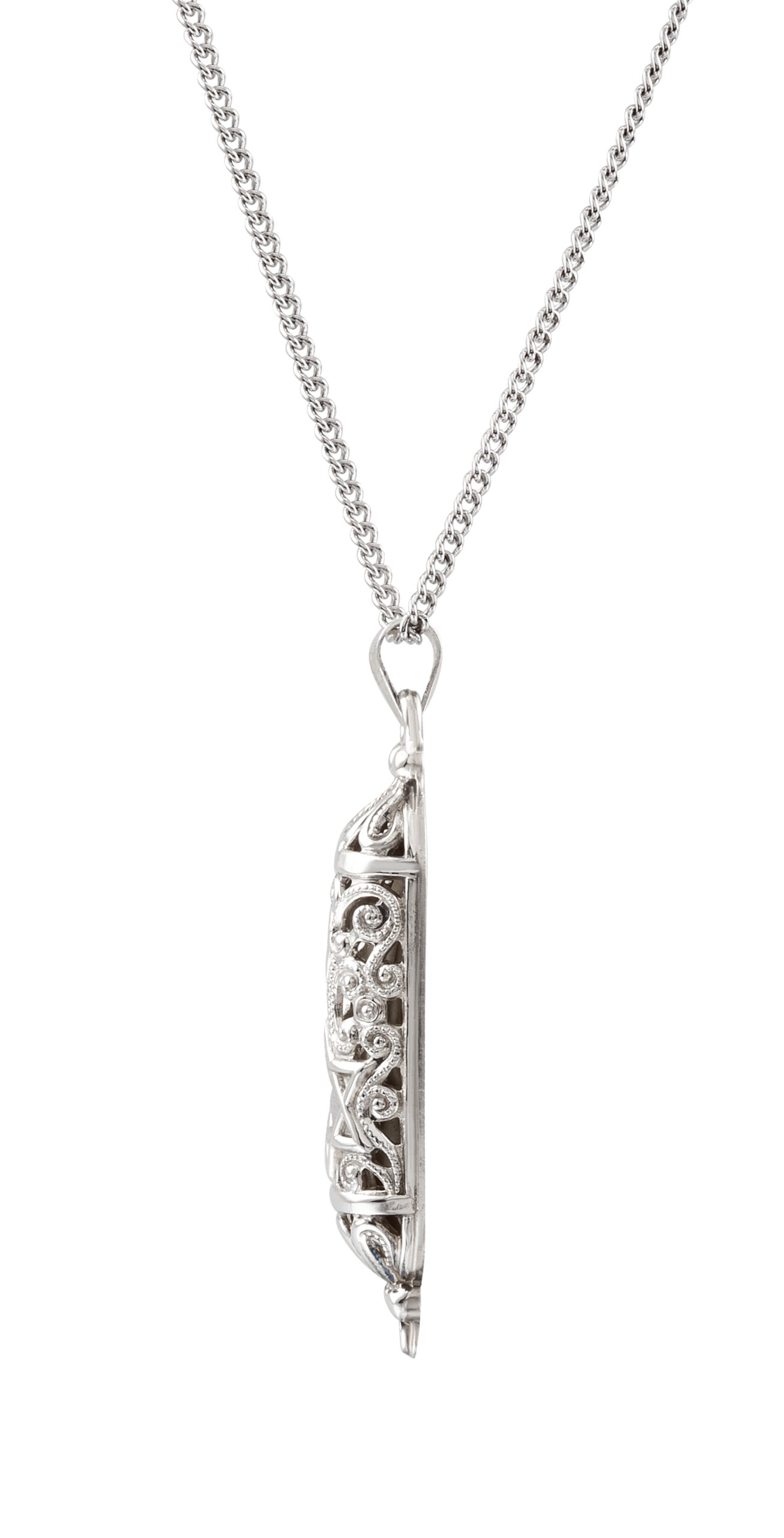 Sterling Silver 36x9 mm Mezuzah and 18 inch Necklace with Parchment.