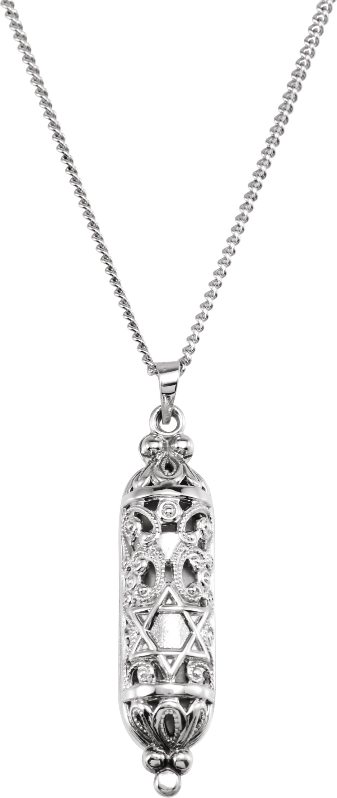Sterling Silver 36x9 mm Mezuzah and 18 inch Necklace with Parchment
