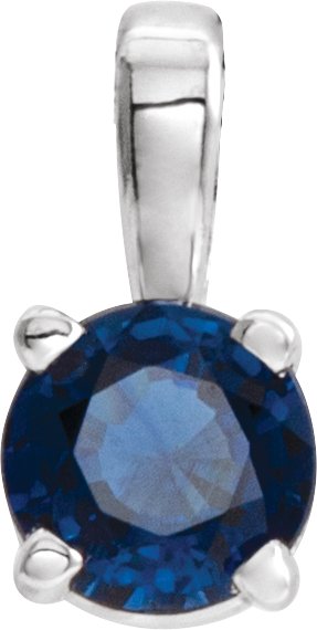 Sterling Silver 4 mm Round Imitation Blue Sapphire Birthstone Pendant