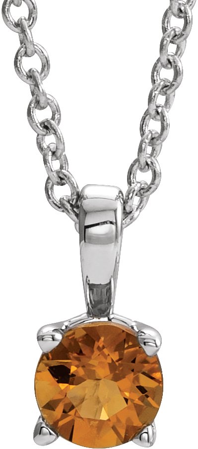 Sterling Silver 4 mm Round Imitation Citrine Birthstone 16 18 inch Necklace
