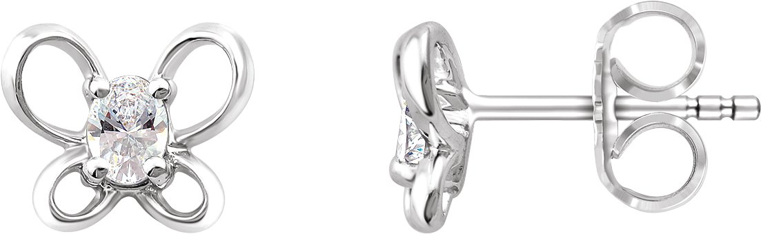 Sterling Silver 4x3 mm Oval April Youth Butterfly Birthstone Earrings