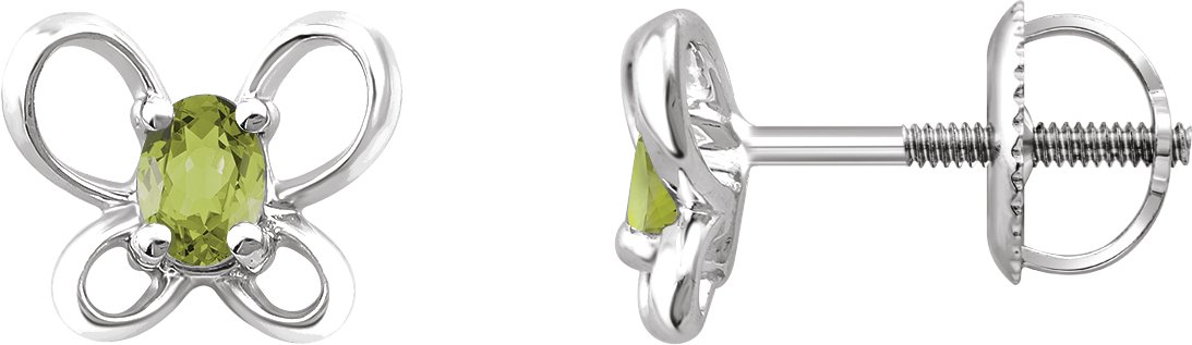 Sterling Silver 4x3 mm Oval August Youth Butterfly Birthstone Earrings