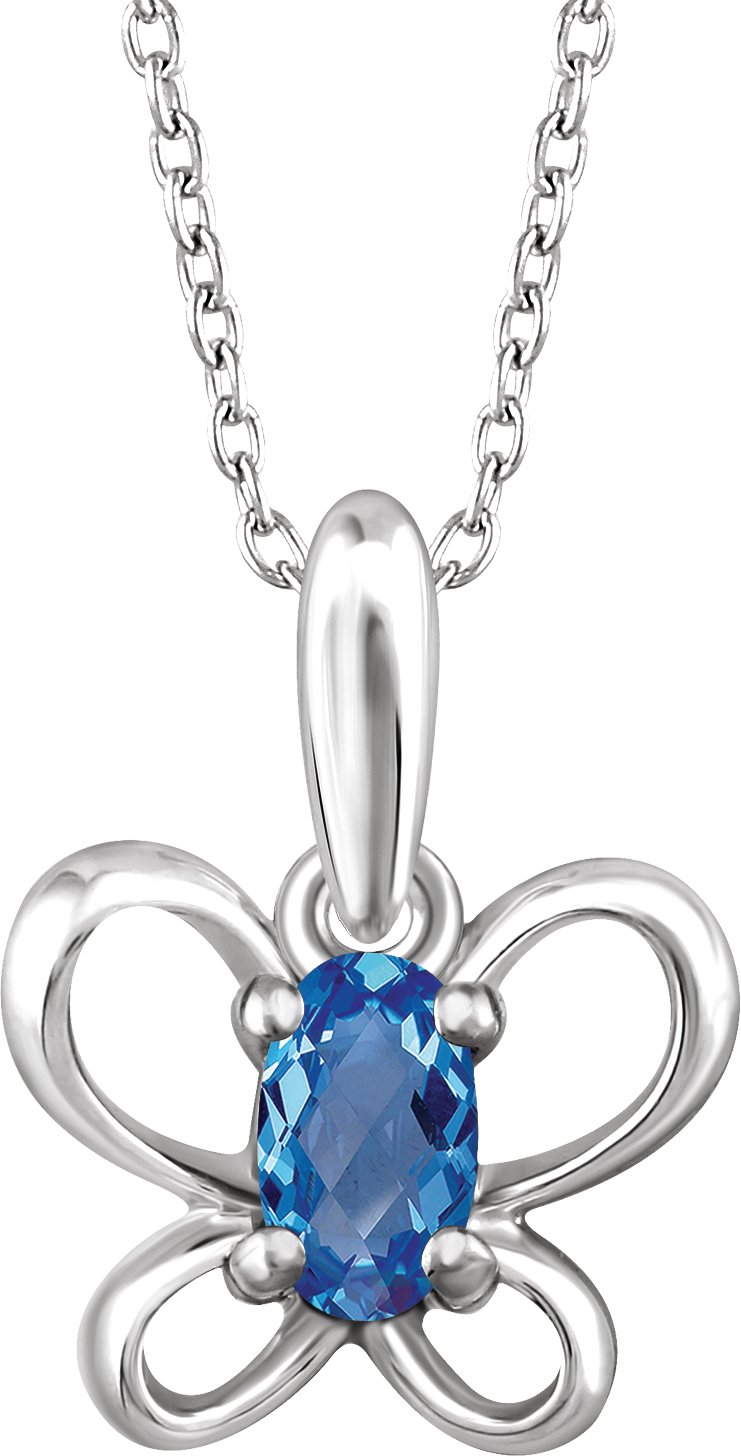 Sterling Silver 4x3 mm Oval December Youth Butterfly Birthstone 15 inch Necklace