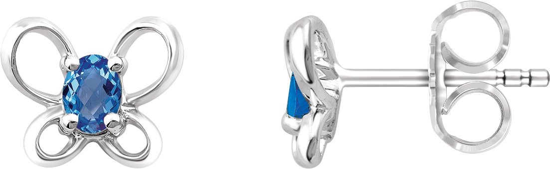 Sterling Silver 4x3 mm Oval December Youth Butterfly Birthstone Earrings