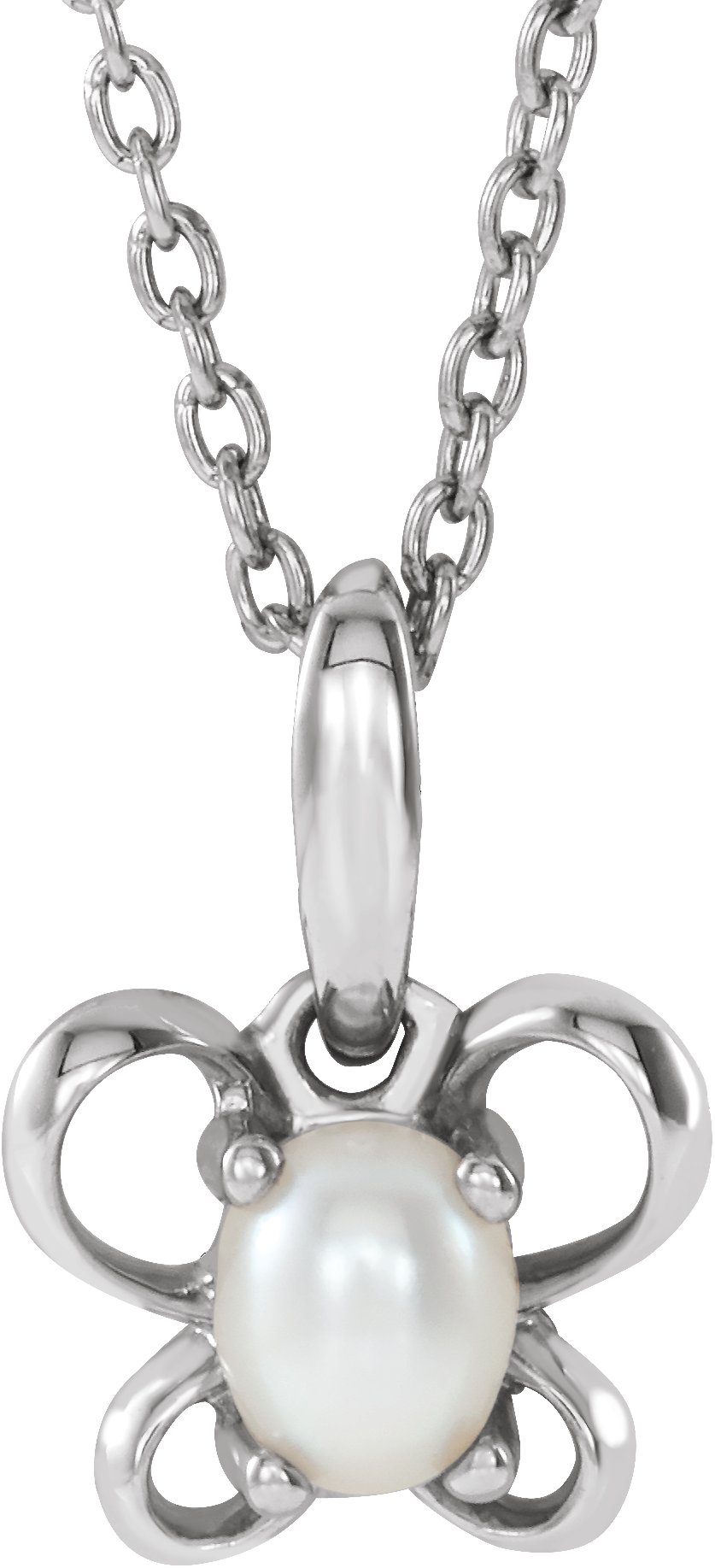 Sterling Silver 4x3 mm Oval June Youth Butterfly Birthstone 15 inch Necklace