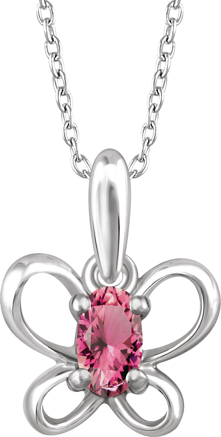 Sterling Silver 4x3 mm Oval October Youth Butterfly Birthstone 15 inch Necklace