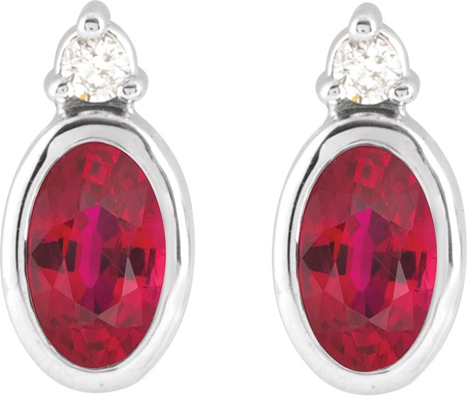 Description: Lab-Grown Ruby And .03 CTW Natural Diamond Earrings