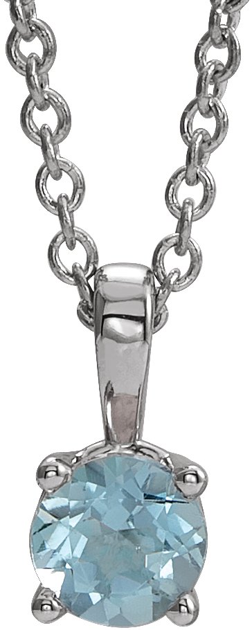 Sterling Silver 6 mm Round Imitation Aquamarine Birthstone 16 18 inch Necklace