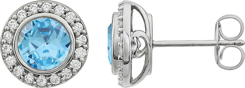 Sterling Silver 6 mm Round Light Blue Cubic Zirconia Halo Style Earrings