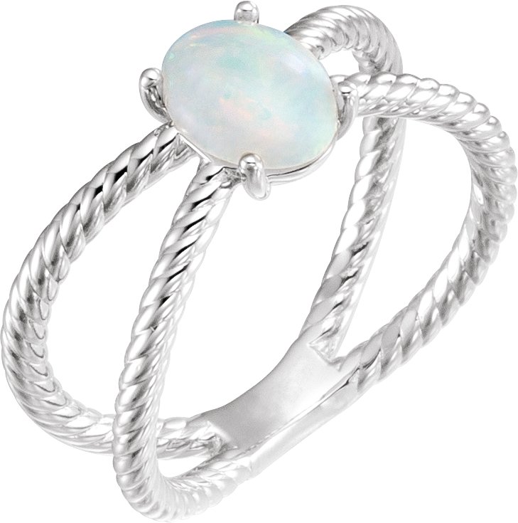 Sterling Silver 6x4 mm Opal Criss Cross Rope Ring