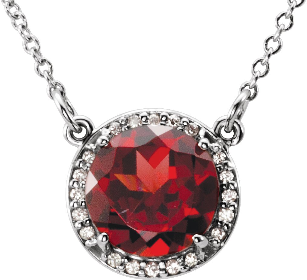 Description: Garnet And .04 CTW Diamond Necklace