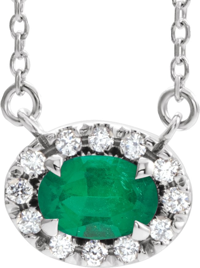 Sterling Silver 7x5 mm Oval Emerald & 1/6 CTW Diamond 18 inch Necklace