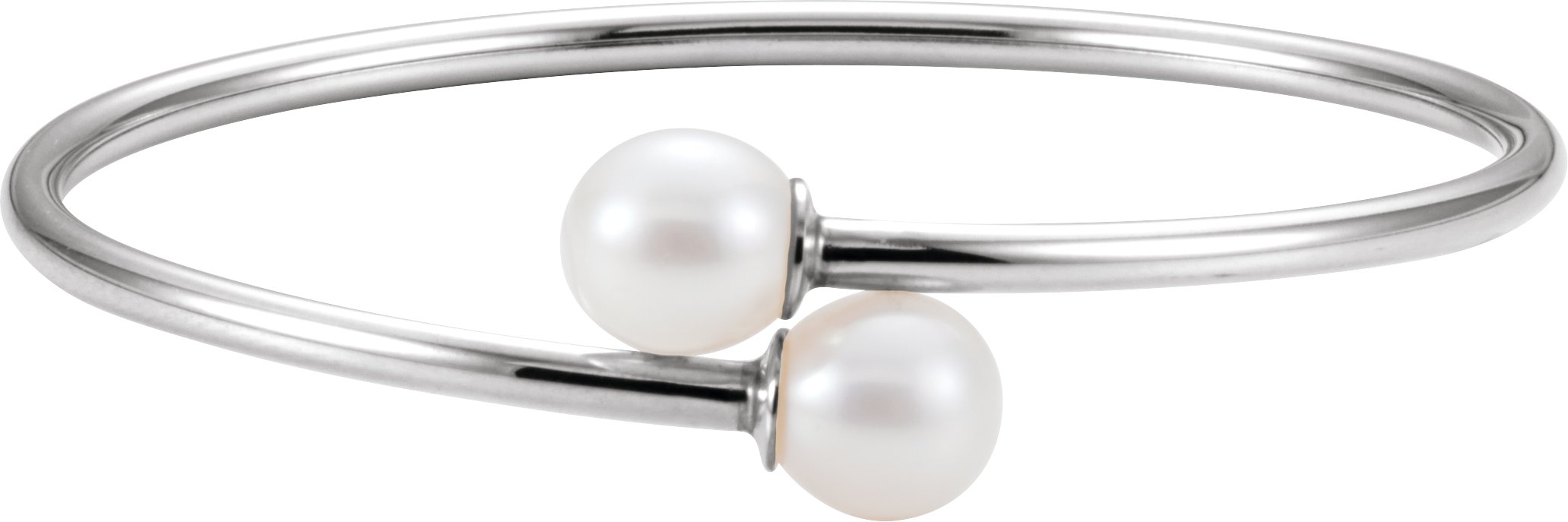 Sterling Silver 9.5 mm White Pearl Flexible Bangle Bracelet