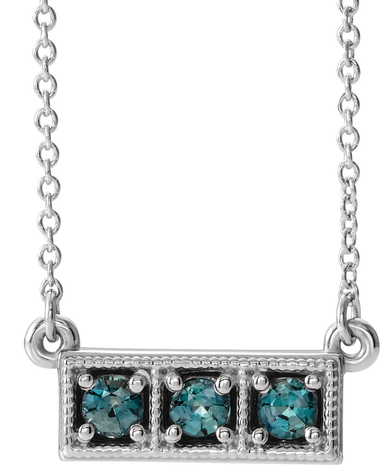 Sterling Silver Alexandrite Three Stone Granulated Bar 16 18" Necklace Ref. 14204239