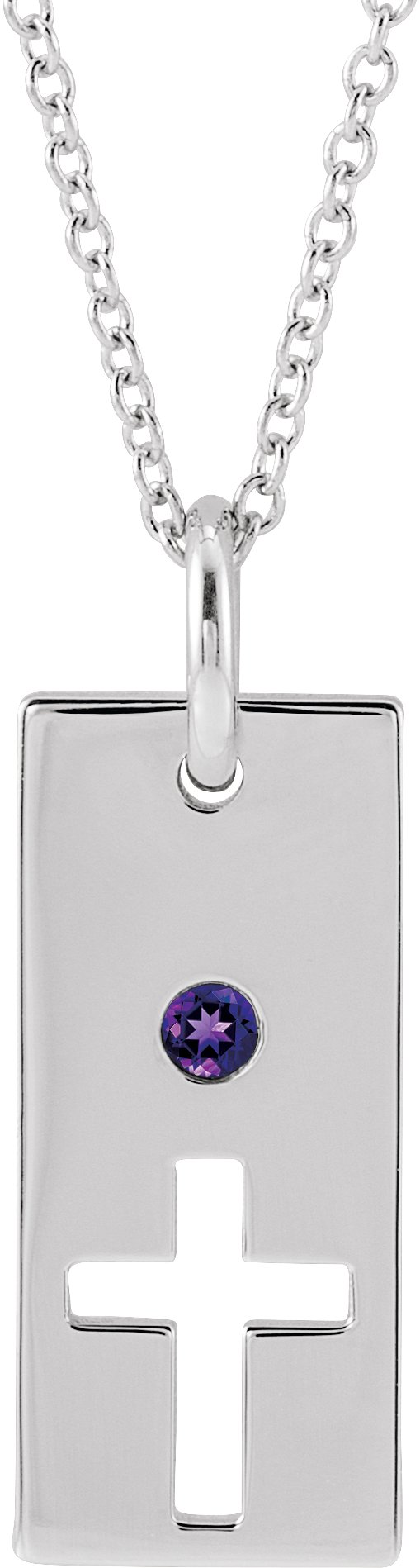 Sterling Silver Amethyst Cross Bar 16 18" Necklace Ref. 17077722