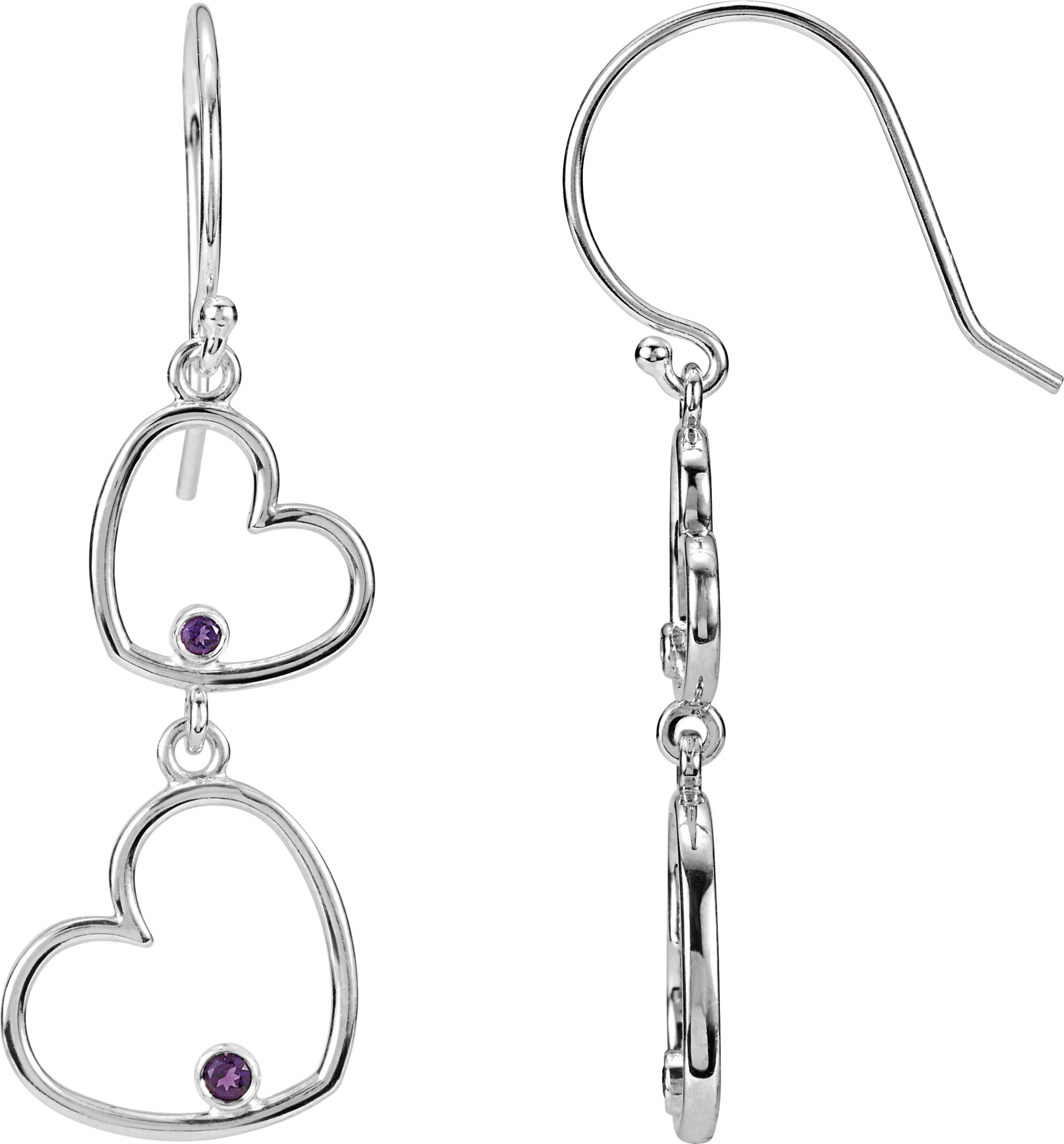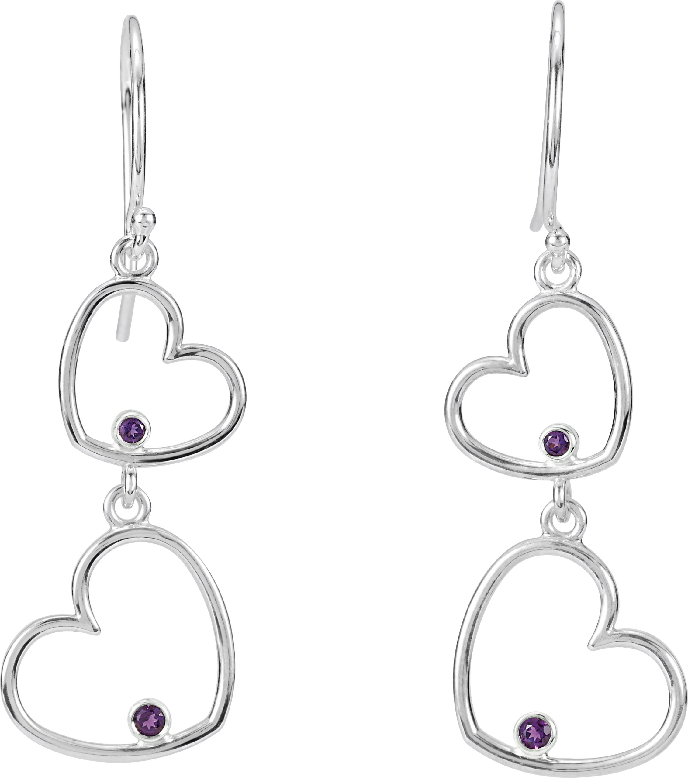 Sterling Silver Amethyst Double Heart Earrings