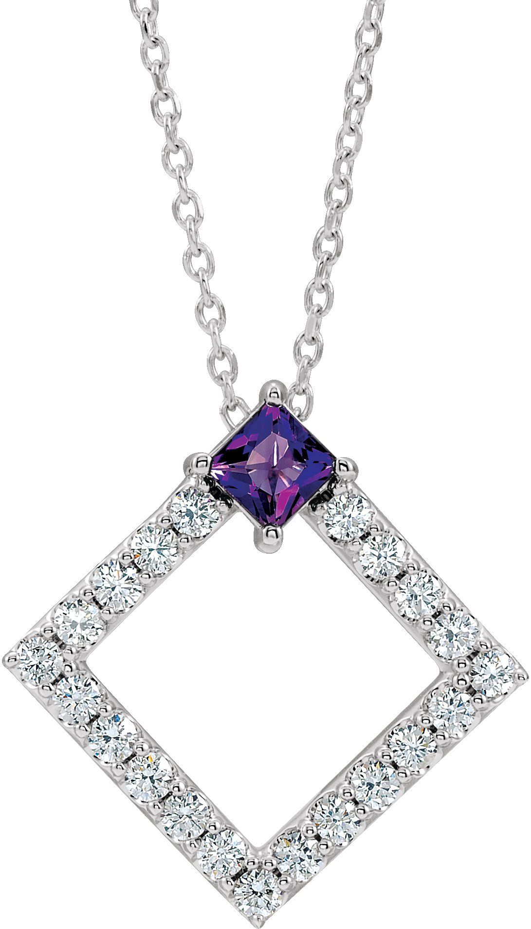 Sterling Silver Amethyst and .375 CTW Diamond 16 18 inch Necklace