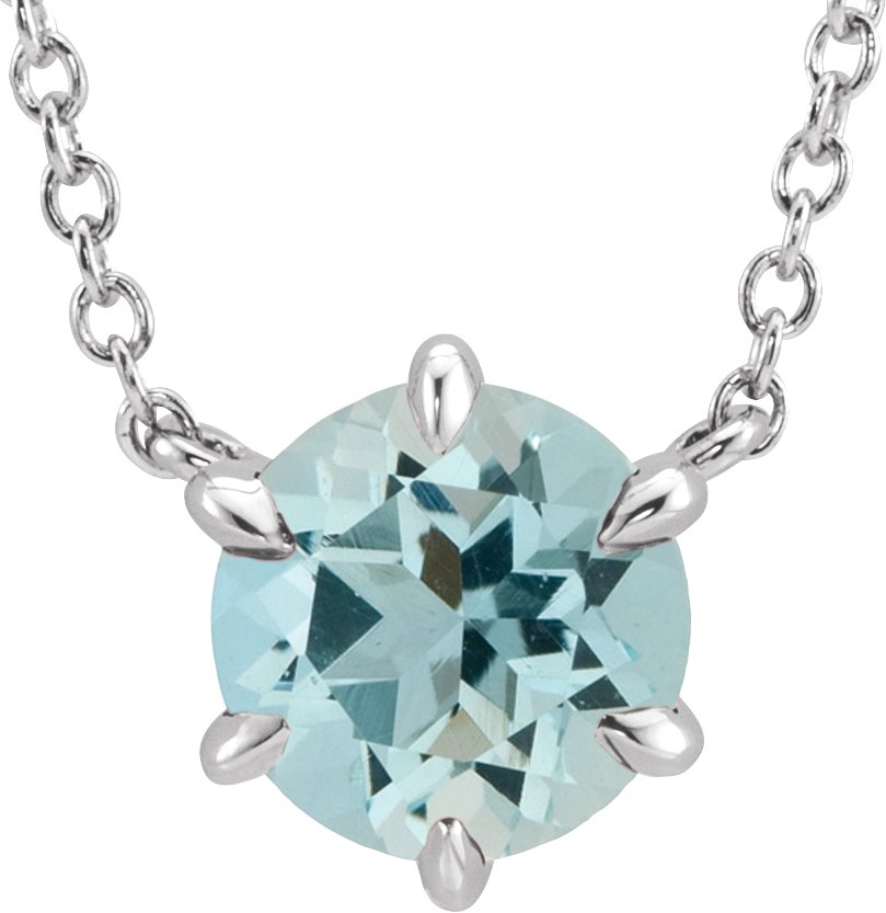 Sterling Silver Aquamarine Solitaire 18 inch Necklace