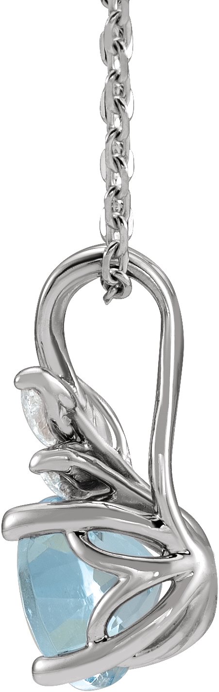 Description: Genuine Aquamarine And 1/10 Ctw Diamond Necklace