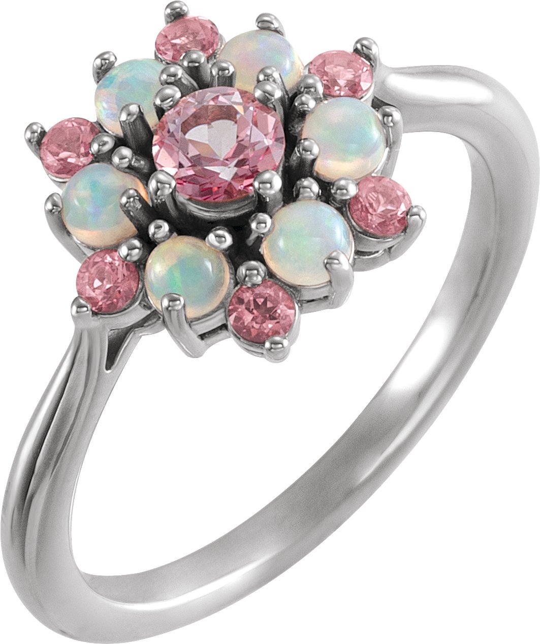 Sterling Silver Baby Pink Topaz & Ethiopian Opal Floral Inspired Ring