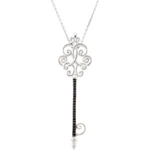 Sterling Silver Black Spinel Key 18" Necklace Ref. 3149952