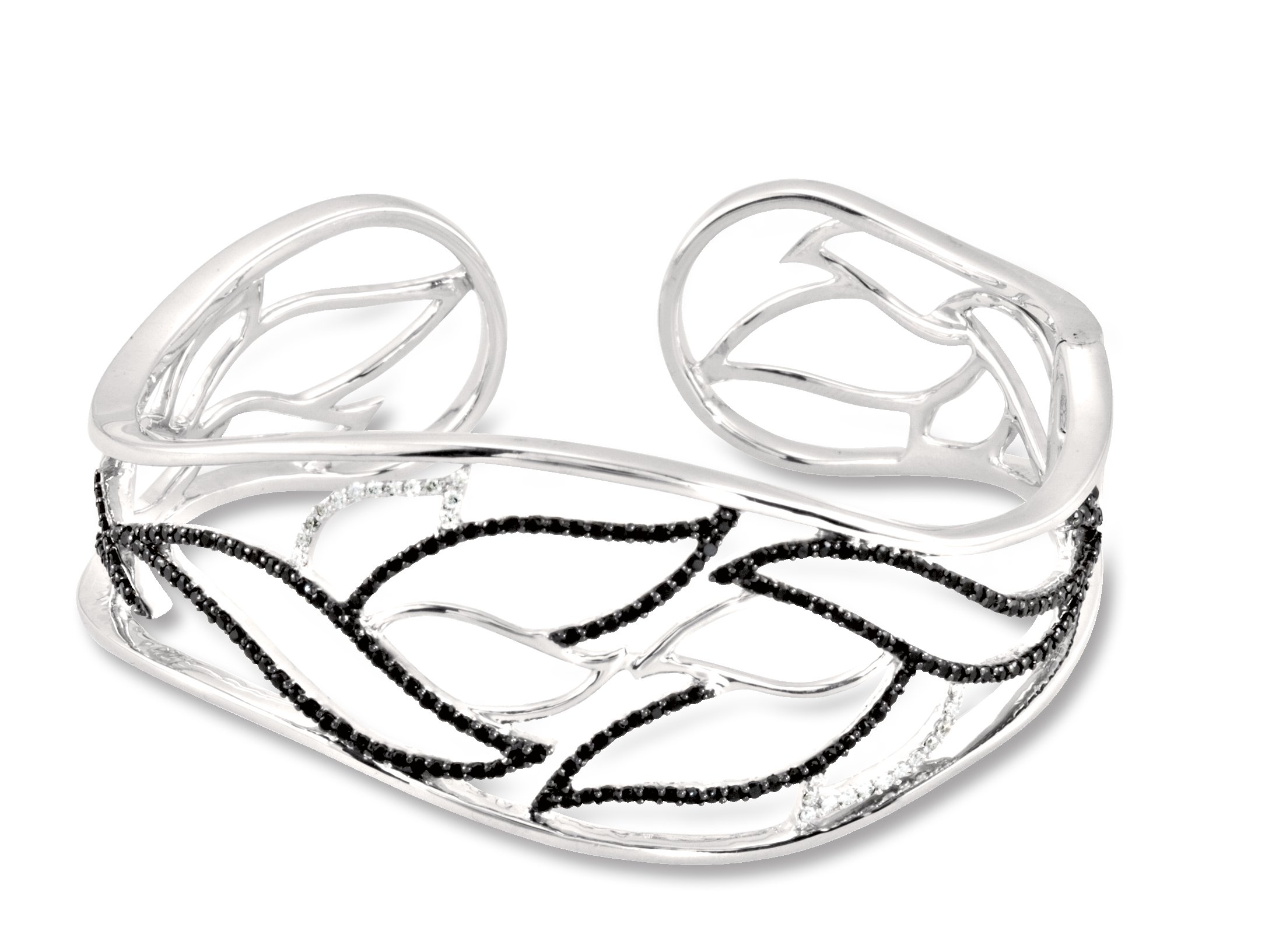 Sterling Silver Black Spinel and .17 CTW Diamond Hinged Cuff Bracelet