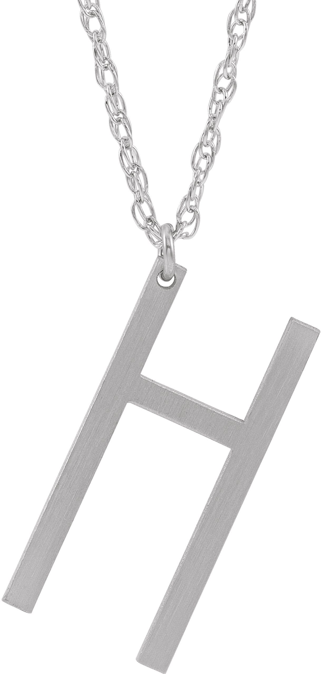 Sterling Silver Block Initial H 16 18" Necklace with Brush Finish Ref. 16047287