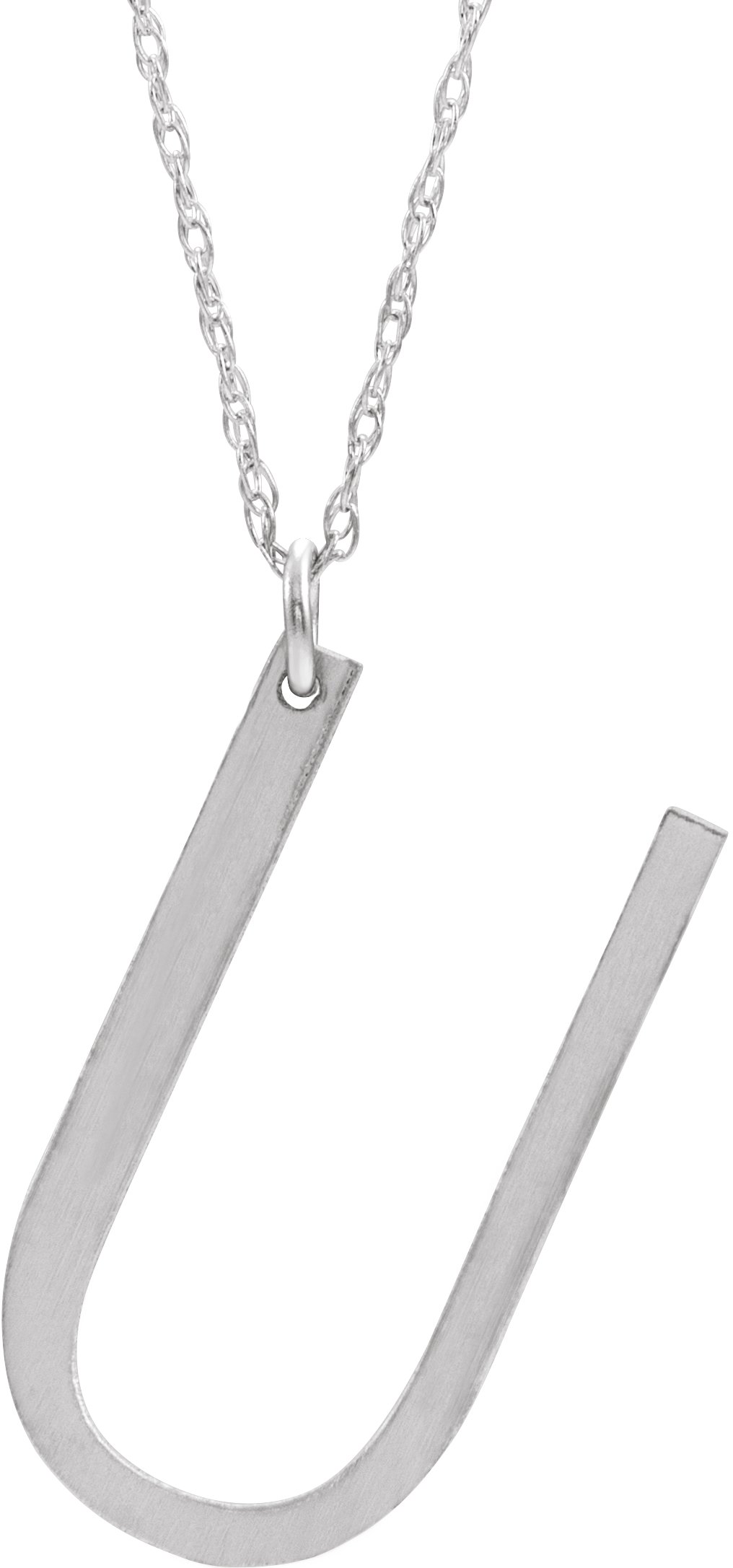 Sterling Silver Block Initial U 16 18" Necklace with Brush Finish Ref. 16047300