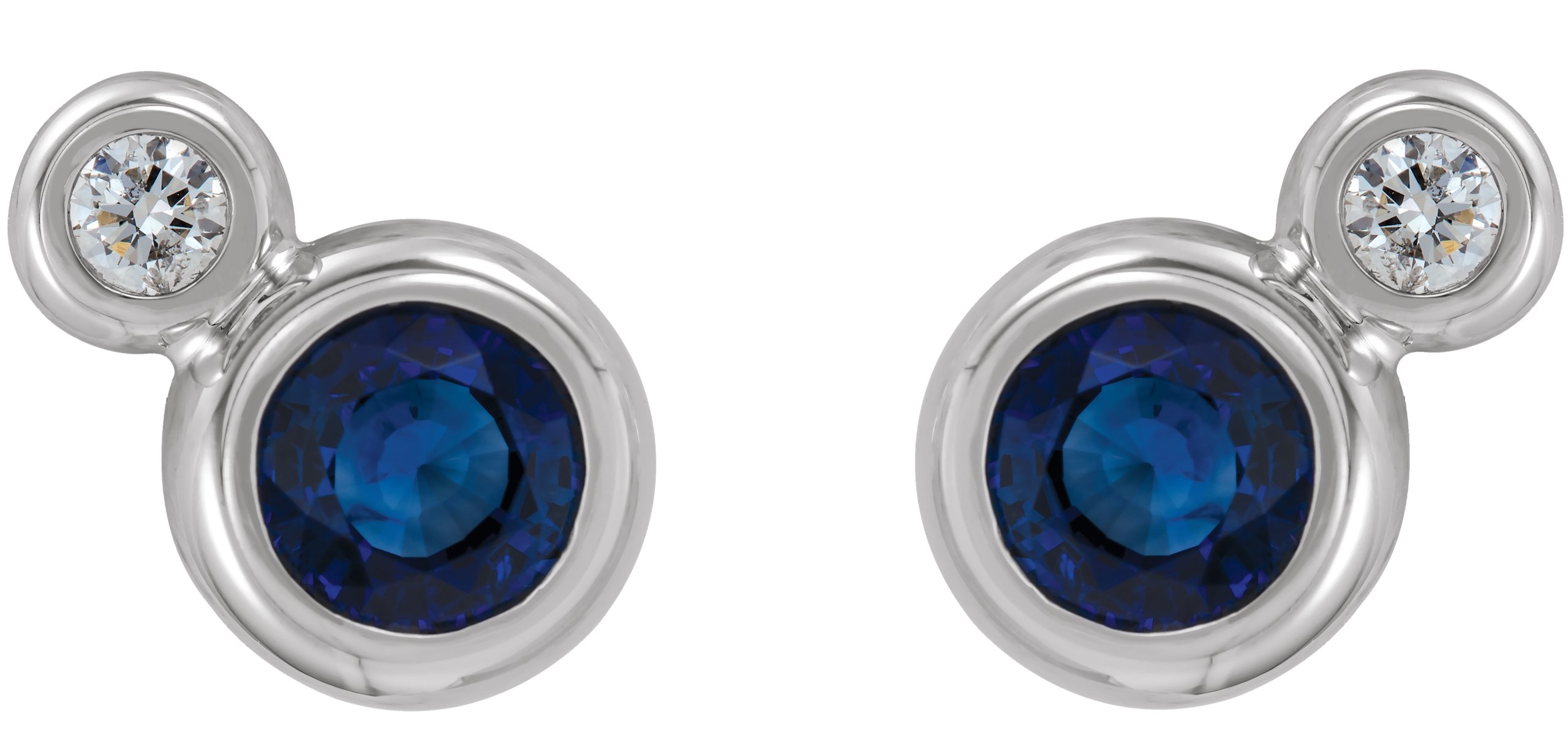 Description: Genuine Blue Sapphire And 1/8 Ctw Diamond Earrings