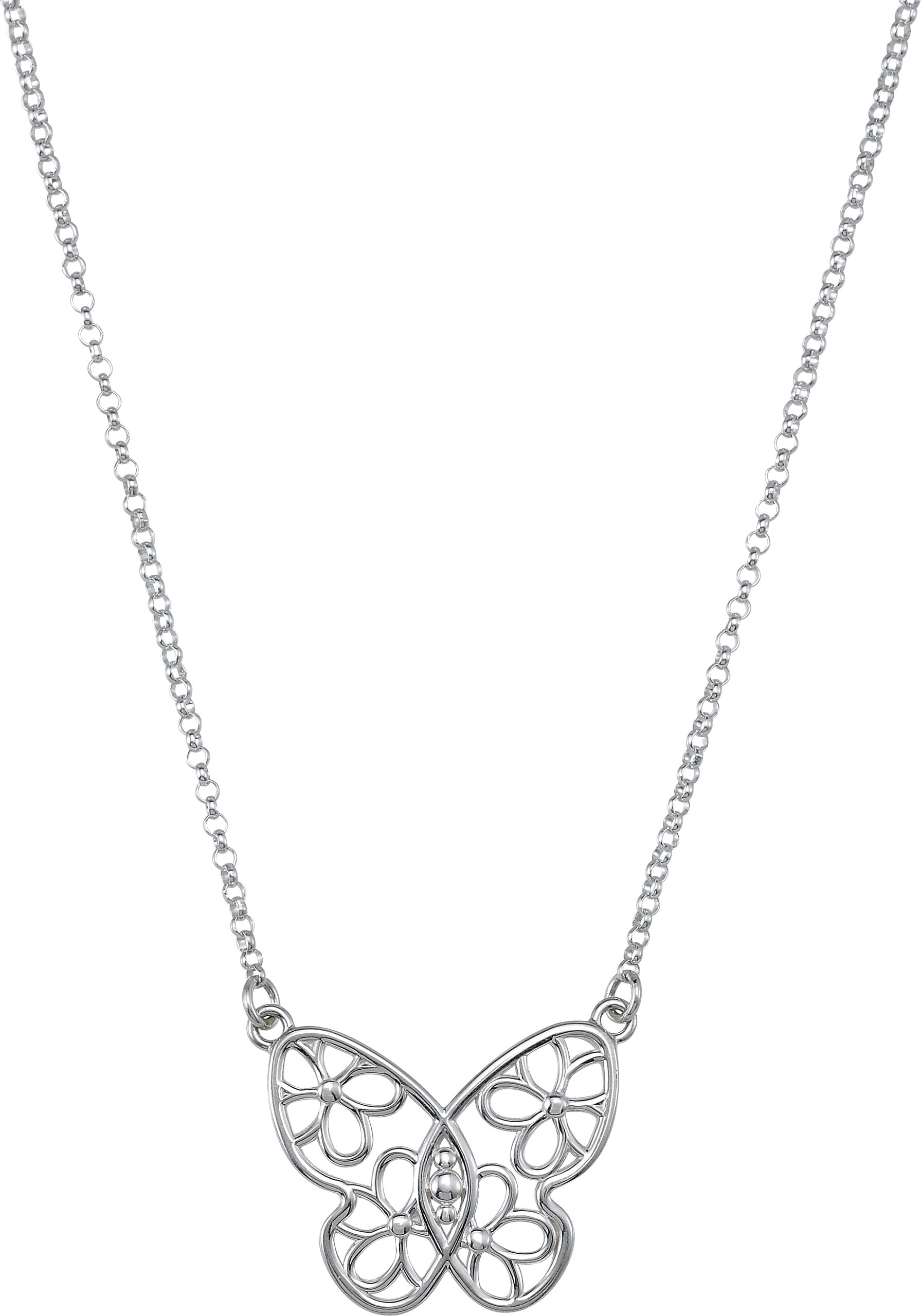 Sterling Silver Butterfly & Floral Inspired 16" Necklace Ref. 3411076