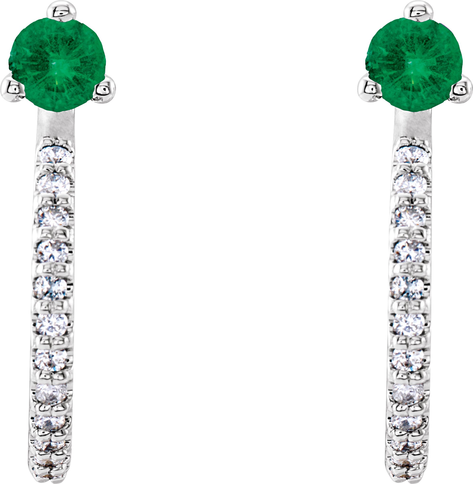 Sterling Silver Chatham Lab Created Emerald and .17 CTW Diamond Hoop Earrings