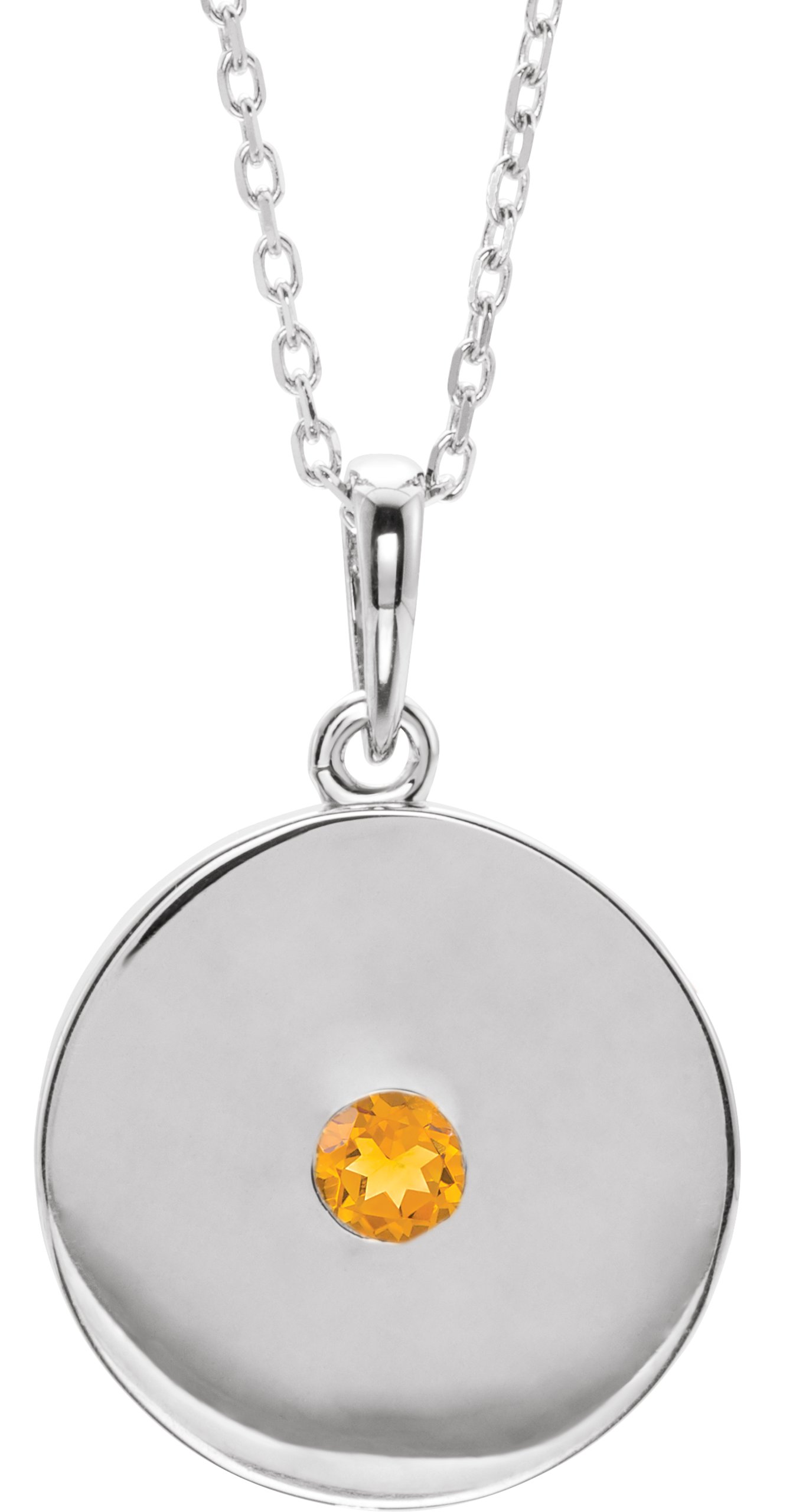 Description: Genuine Citrine Disc Pendant Necklace